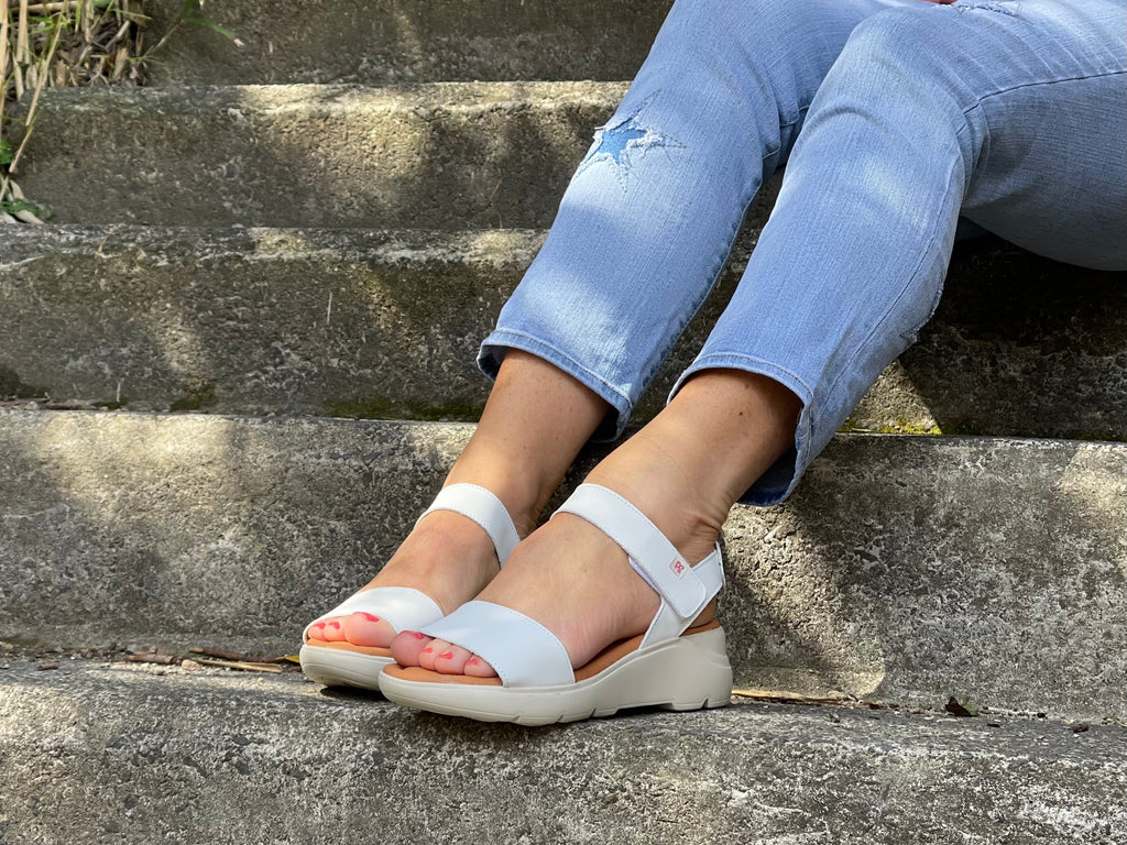 Pepe Saenz Palmer. Everyday ease with a touch of Spanish flair. Made in Spain, these lightweight sandals are designed for comfort and style in equal measure. The 5.5cm wedge with a 2.5cm platform gives you just the right lift, while the padded footbed keeps you supported all day. Adjustable Velcro straps ensure a secure, customized fit, and the smooth leather uppers add a sleek, modern finish. Perfect for warm days, travel, or everyday wear – these sandals are as versatile as they are comfortable.