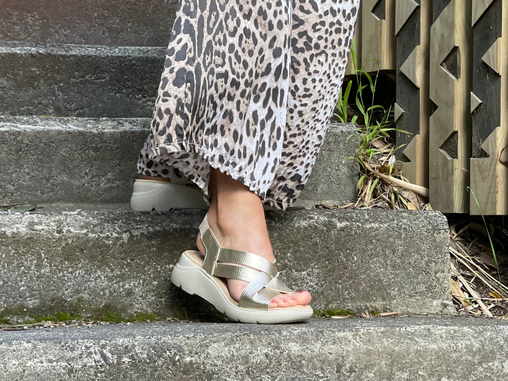 Pepe Saenz Paris. Lightweight glamour you can wear all day. Made in Spain, these sandals combine comfort and elegance with ease. The 5.5cm wedge and 2.5cm platform give a gentle lift, while the padded sole keeps every step cushioned. Crafted with soft metallic gold leather straps in a chic crossover design, they bring just the right amount of shine to any outfit. Perfect for summer occasions, evenings out, or adding a touch of sparkle to everyday looks.