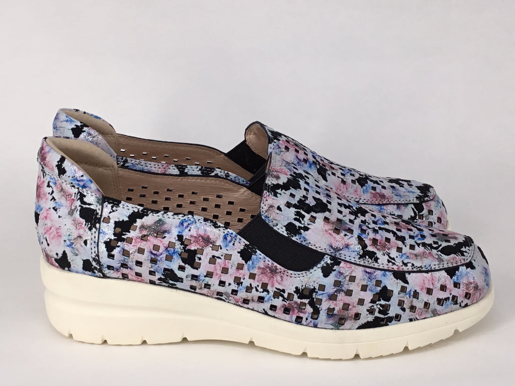 Tango's Pacific. This easy slip-on leather shoe is the perfect blend of comfort and everyday practicality, designed for women who want support without fuss. Crafted from soft, lightweight leather, it features a subtle perforated pattern throughout the upper for breathability and visual interest. The elastic gusset panels across the instep allow the shoe to stretch and flex as you walk, making it incredibly easy to slip on while still holding the foot securely.