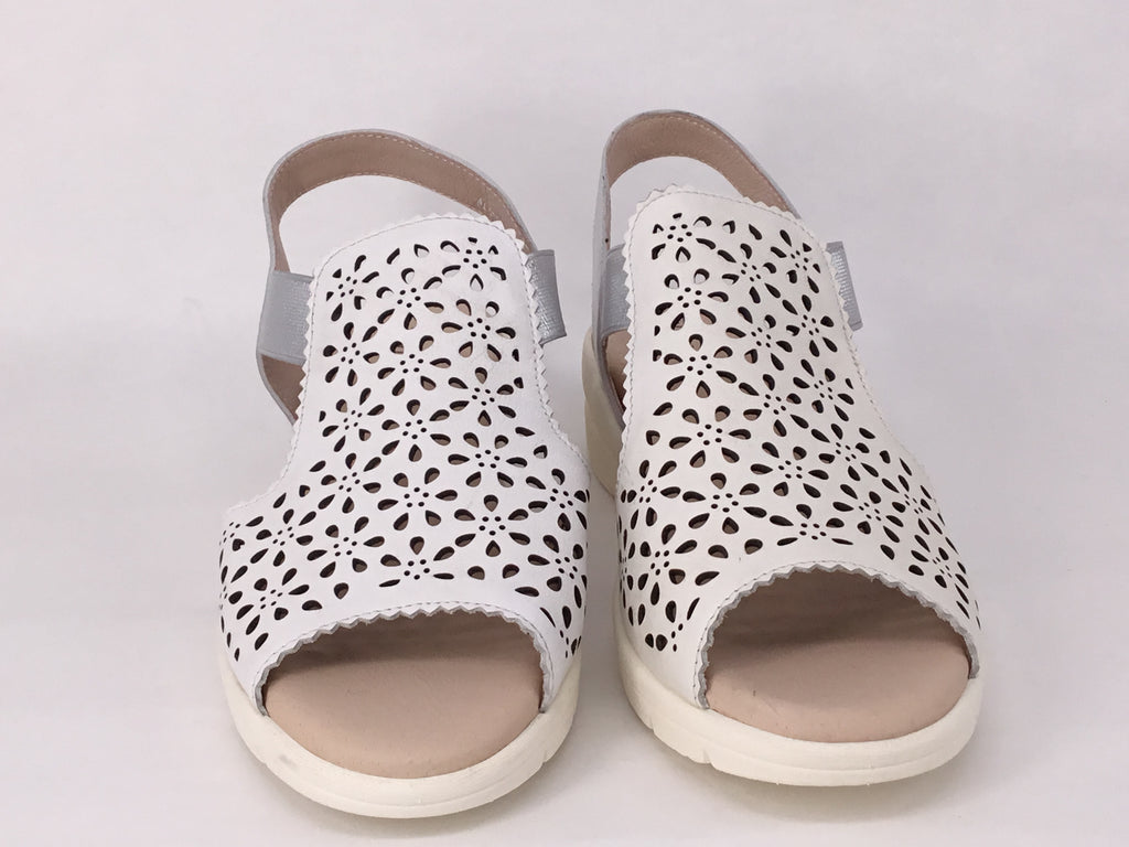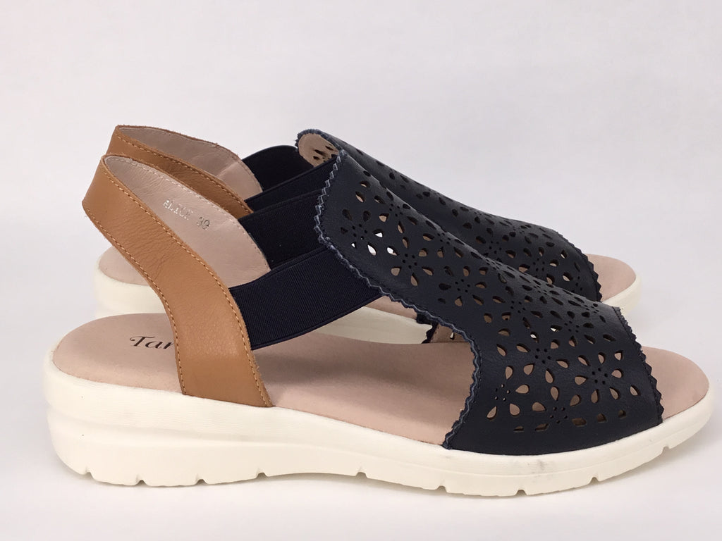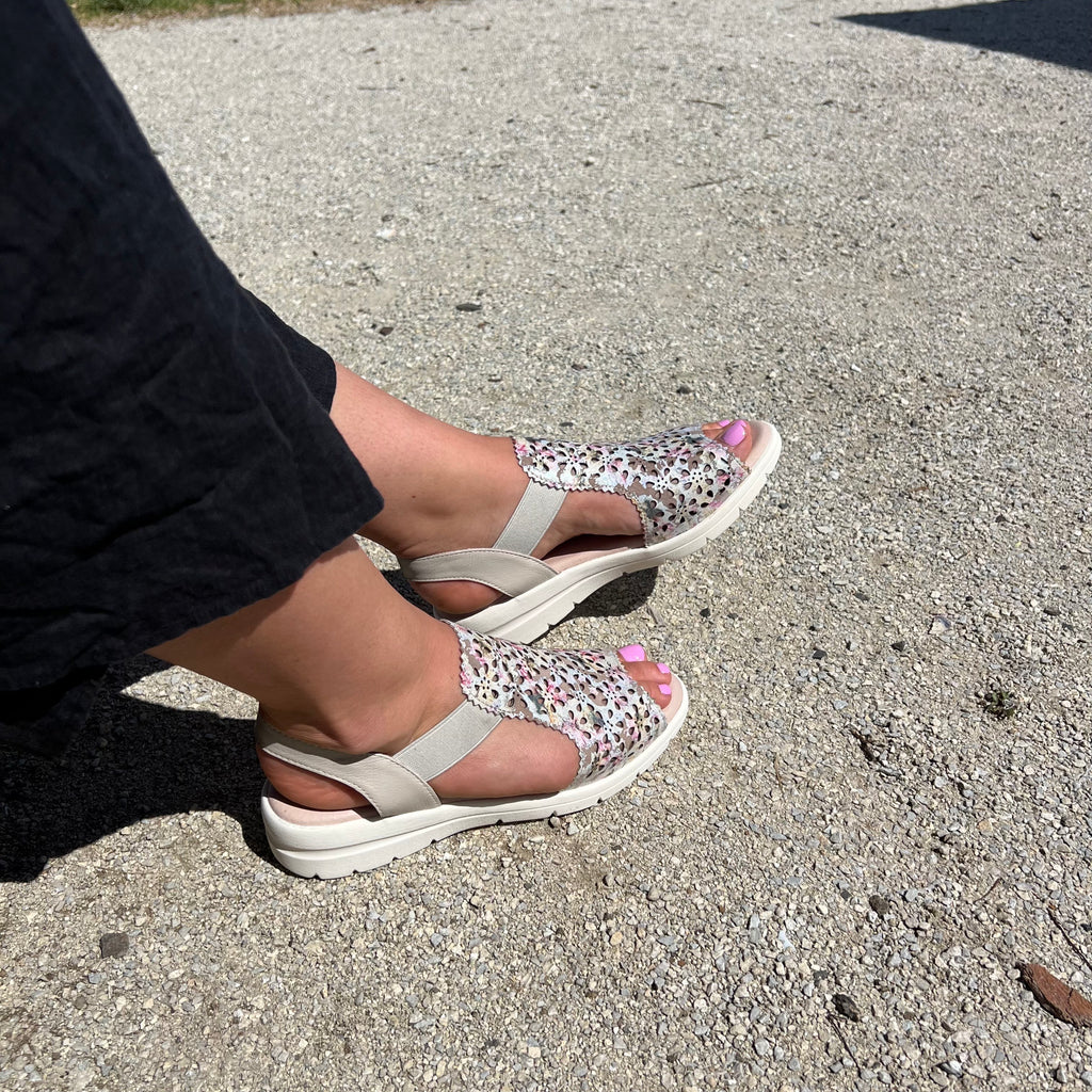Tango's Alice. Designed for all-day ease, this lightweight leather sandal blends comfort with thoughtful detail. The softly cut-out upper allows the foot to breathe while still offering secure, flattering coverage. Elasticated side panels create flexibility through movement, making the style easy to slip on and off, while the supportive back strap helps keep the foot comfortably in place. Underfoot, a cushioned footbed pairs with a lightweight sole to absorb impact and reduce fatigue throughout the day.